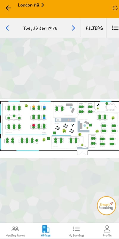 Select a desk on the office floor plan to make a booking.
