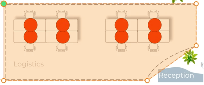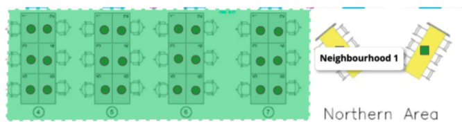 Desk Neighbourhoods and Meeting Zones allow you to visually group desks and meeting rooms on your office floor plan.